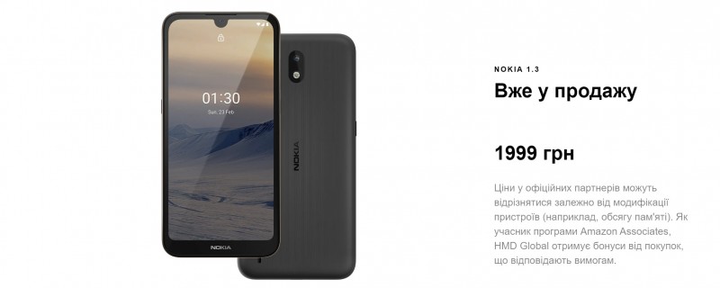 Компанія HMD Global оголосила про український старт продажів нового смартфону Nokia 1.3. Про це повідомили в прес-службі виробника.