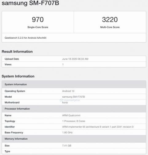 У базі даних тестового пакета Geekbench з’явилася згадка смартфона з каталожним номером SM-F707B. Передбачається, що це Samsung Galaxy Z Flip 5G – розвиток лютневої версії складаного смартфона компанії.